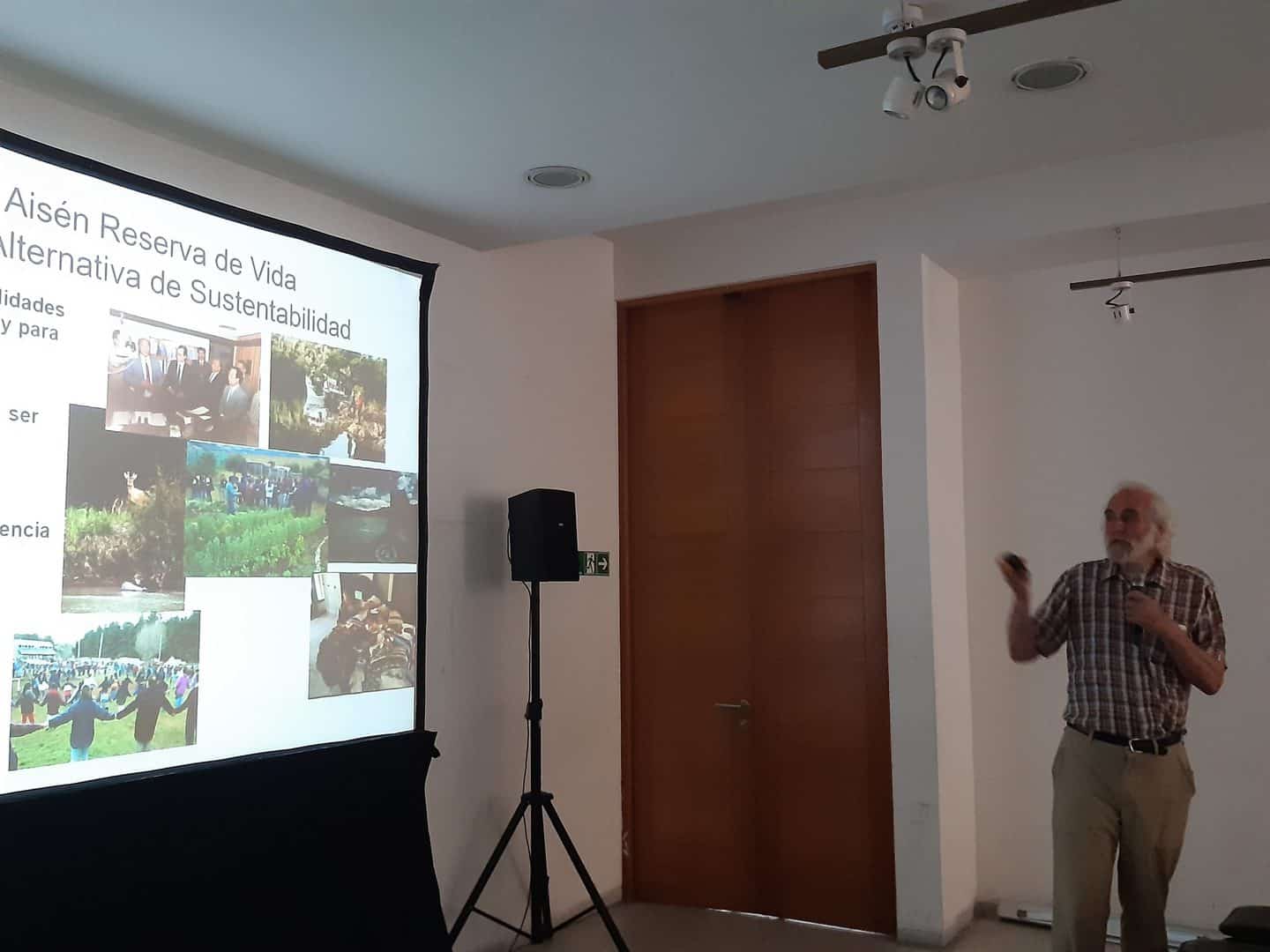 Otra de las actividades que se realizó en el Centro Cultural Tío Lalo Parra fue el seminario “La propuesta ciudadana Aisén reserva de vida como ejemplo regional y territorial ante la emergencia climática”, en la cual expuso nuestro socio honorario Peter Hartmann, relatando la lucha que ha realizado por mantener la protección de la Patagonia frente a distintas amenazas ambientales.