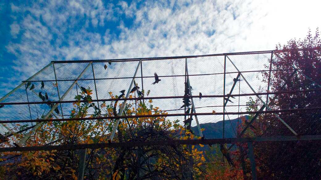 Uno de los momentos más bellos de este traslado fue que una bandada de Tricahues que viven en el lugar, se acercaron a la jaula, conectándose rápidamente con las aves que estaban en Santiago por su rehabilitación.