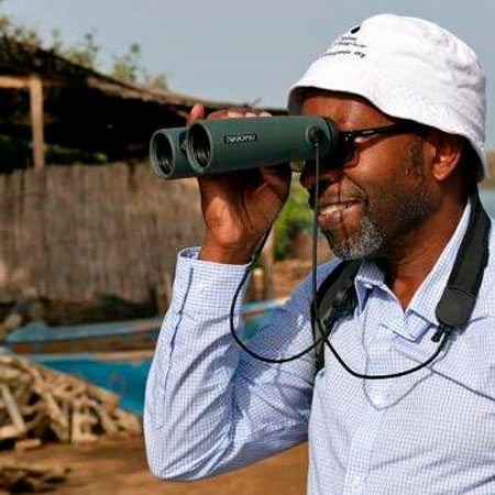Nací y crecí en Freetown, Sierra Leona, y he tenido una pasión de por vida por la vida silvestre y las aves. Aquí, al principio, estaba acostumbrado a ser visto como el loco «hombre pájaro». Tuve que ser experto en explicar el valor de las aves y señalar que la observación de las aves no era un «pasatiempo de los hombres blancos». Esto resultó ser una buena práctica para enseñar biología a estudiantes de la Universidad de Sierra Leona (otra pasión) y para una carrera de 20 años en conservación con BirdLife International. Afortunadamente, en Sierra Leona, ahora tenemos una bandada pequeña pero creciente de jóvenes observadores de aves.